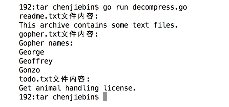 fmt.Printf("%s的文件内容: ", hdr.Name)